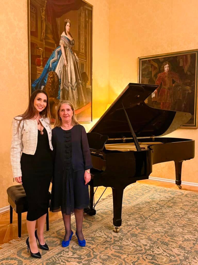 En la foto, Mery Cabezuelo junto a Aurora Mejía, embajadora de España en Austria
